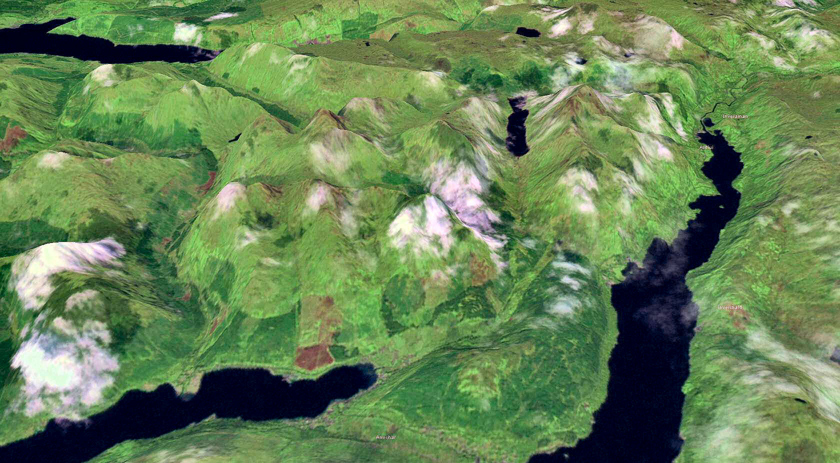 Right, if everything goes to plan and the weather is not too bad I will be standing on one of those hills in the picture below (large version) on Friday, Saturday or Sunday. Or on two of those days. Or in best case on all three days. Meaning: Keep your fingers crossed that the weather will be nice. Or if you are so inclined perform a weather dance to convince the weather gods to send some good weather to the Arrochar Alps.